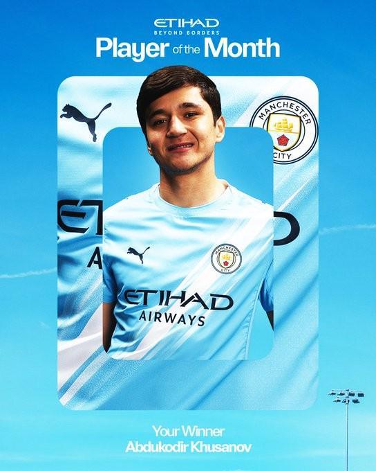 九游电脑版-官方:乌兹别克斯坦后卫胡桑诺夫当选曼城3月最佳球员