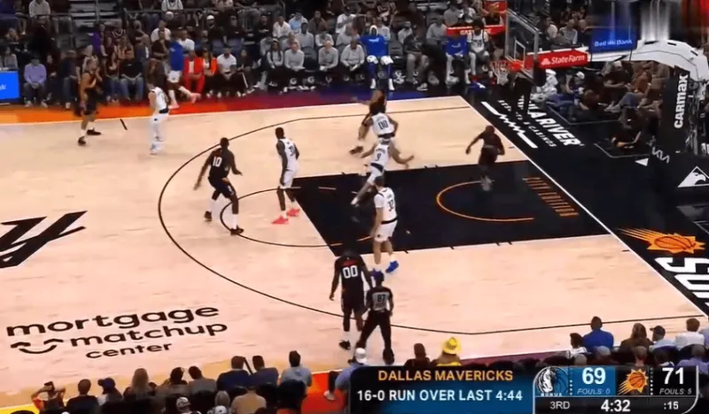 !太阳近四分钟不得分,独行侠轰出16-0追到差2分。